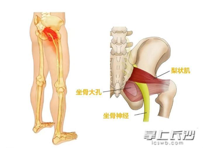 李良军介绍,梨状肌综合征,往往是由于坐骨神经在臀部受到卡压所引起。因为坐骨神经是人体最粗大的神经,负责下肢的感觉和运动,坐骨神经在臀部受到卡压后,导致神经电信号传导不过去,就会出现疼痛、瘸腿的症状。长期久坐、蹲坐、椅子过硬,或习惯性跷脚等姿势,梨状肌容易受到刺激导致僵硬。这种现象,最常发生在久坐的上班族、不爱活动的老年人身上,运动量突然增加的运动员,或久蹲或搬重物的人群等,也可能发生此症。